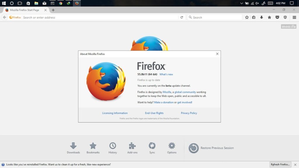 5. Reinicie o Firefox e verifique se a atualização foi realizada com sucesso.