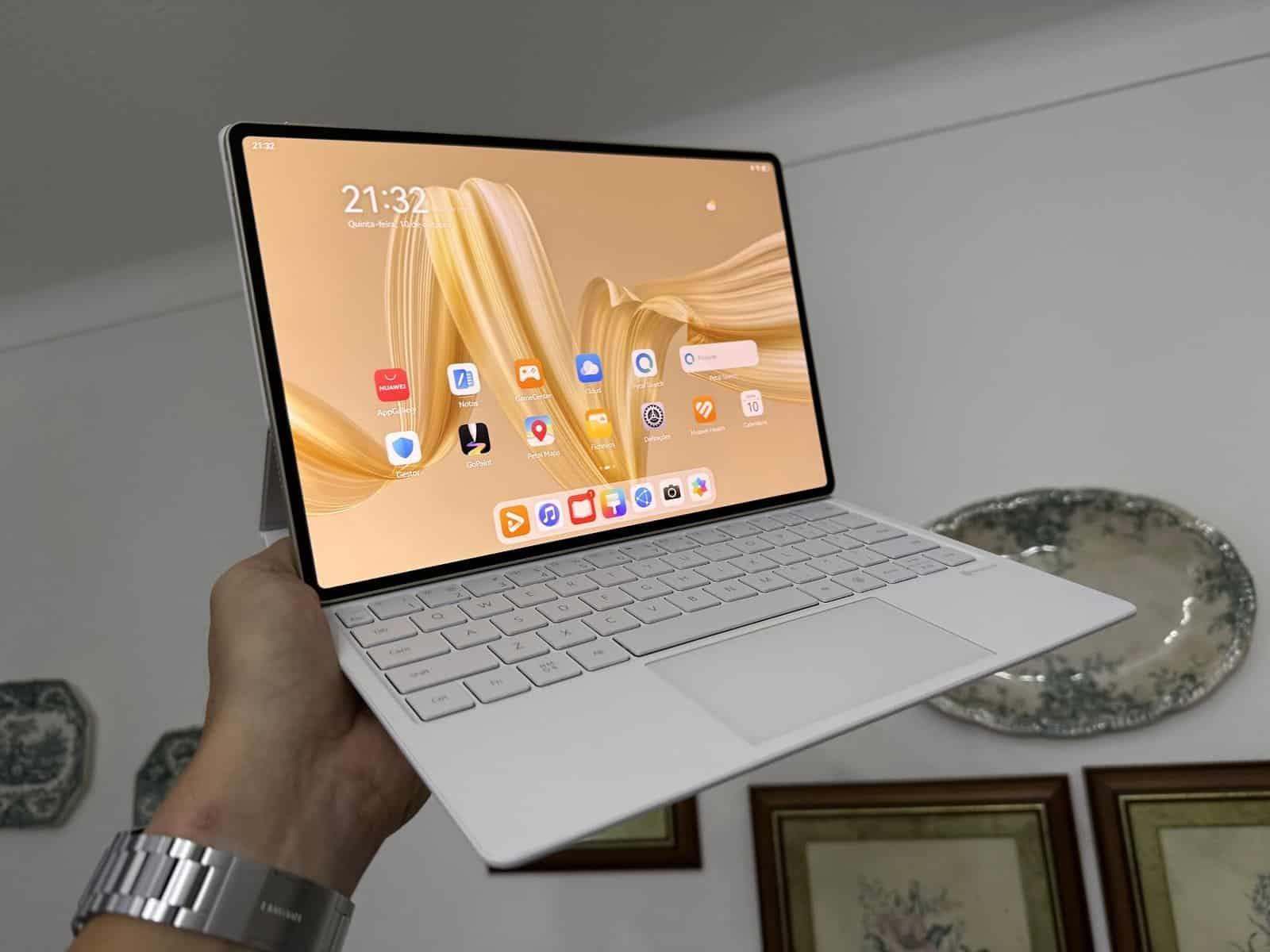 Comparado com um portátil, o tablet é mais leve, liga-se quase instantaneamente e é mais confortável para uso casual, como ler, ver vídeos ou navegar no sofá, na cama, no comboio ou no avião. A bateria também costuma durar mais em uso leve e a experiência tátil é mais natural para alguns tipos de tarefas.